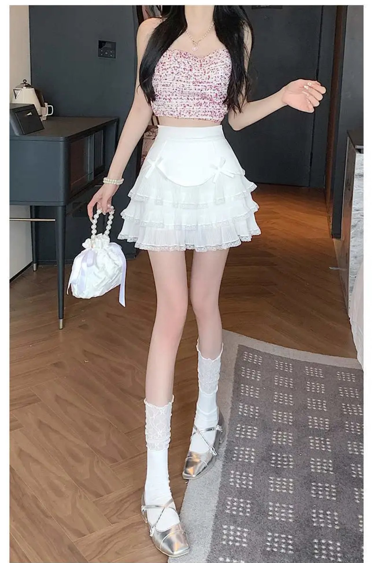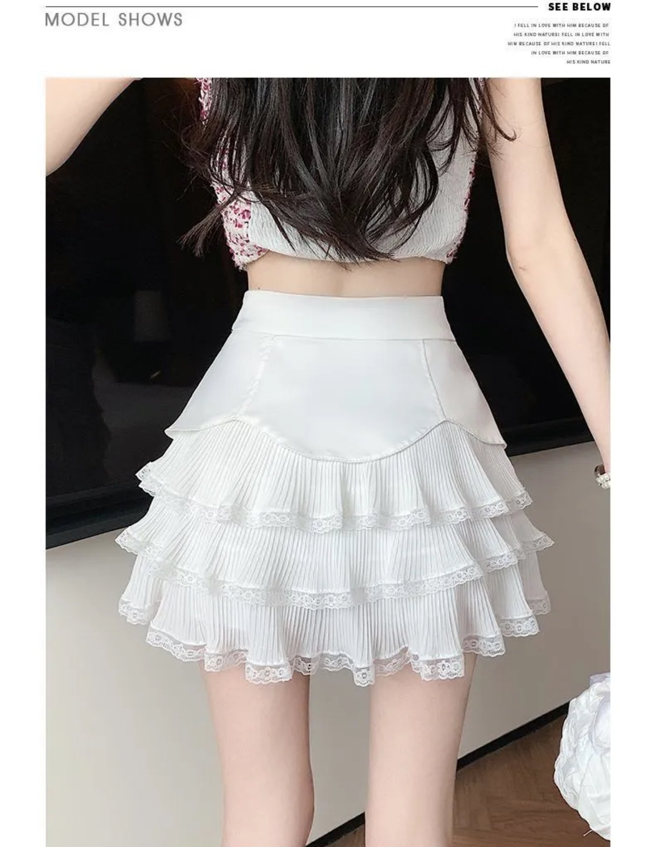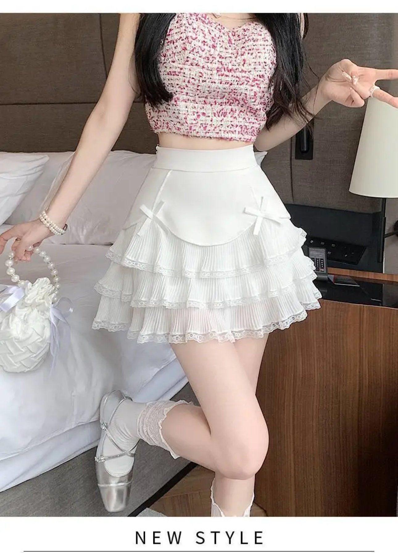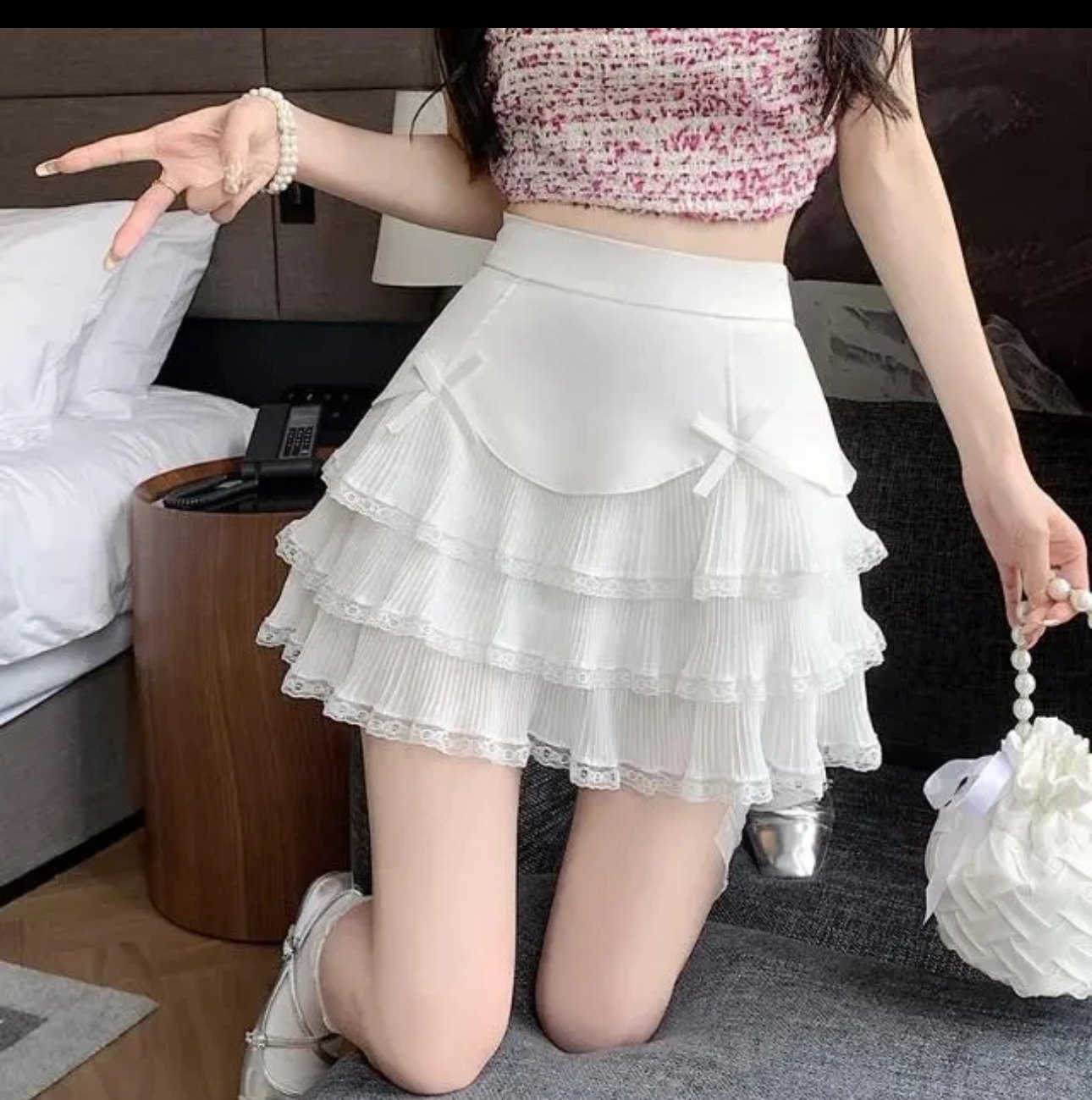 Sweet, soft, and effortlessly feminine — the Ivory Ribbon Ruffle Skirt is a dreamy statement piece. Designed with layered pleated ruffles and delicate lace trim, this high-waisted mini skirt features subtle bow accents that add a charming touch. The structured waistband flatters your silhouette while the tiered layers create graceful movement with every step. Perfect for brunch dates, café outings, or styling with a chic crop top for a romantic coquette-inspired look. ✨