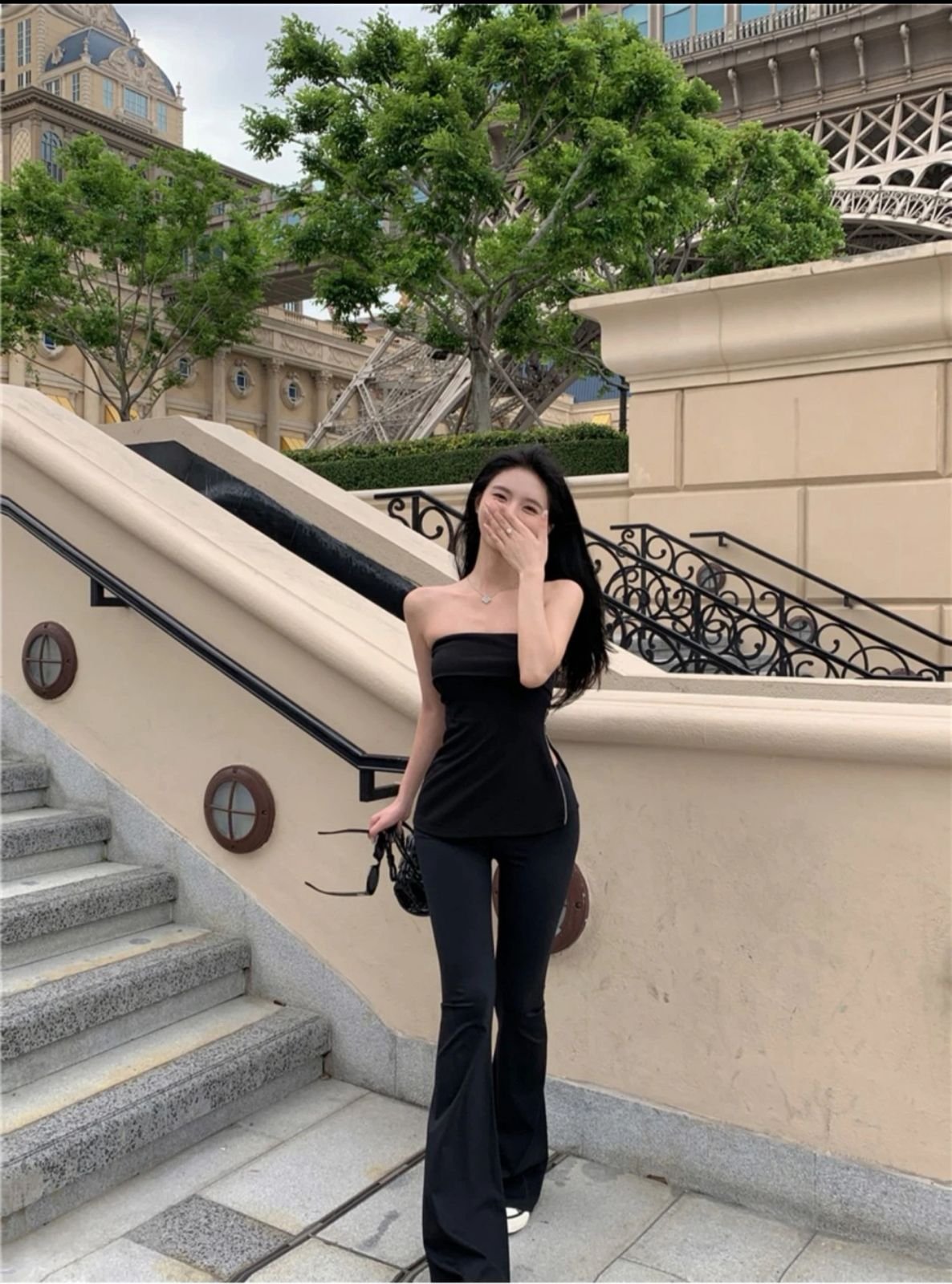 Elevate your silhouette with the Sculpted Noir Strapless Jumpsuit, a sleek one-piece wonder tailored for the bold and the beautiful. Crafted to hug your curves with clean lines and minimalist finesse, this jumpsuit is perfect for rooftop soirées, date nights, or fashion-forward travel looks. The strapless neckline accentuates your collarbone, while the slim-fit legs create an elongated effect — a true head-turner against any cityscape backdrop.